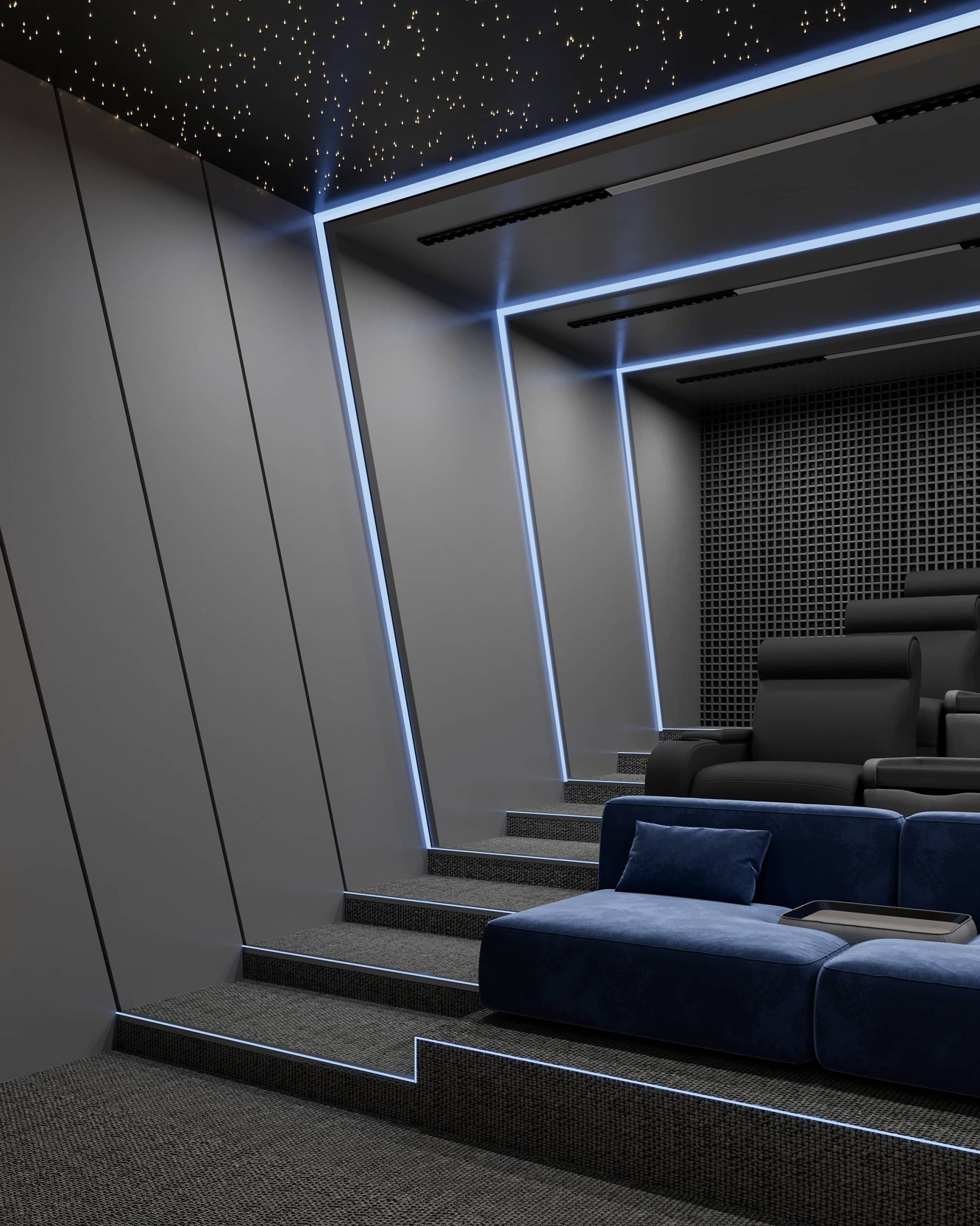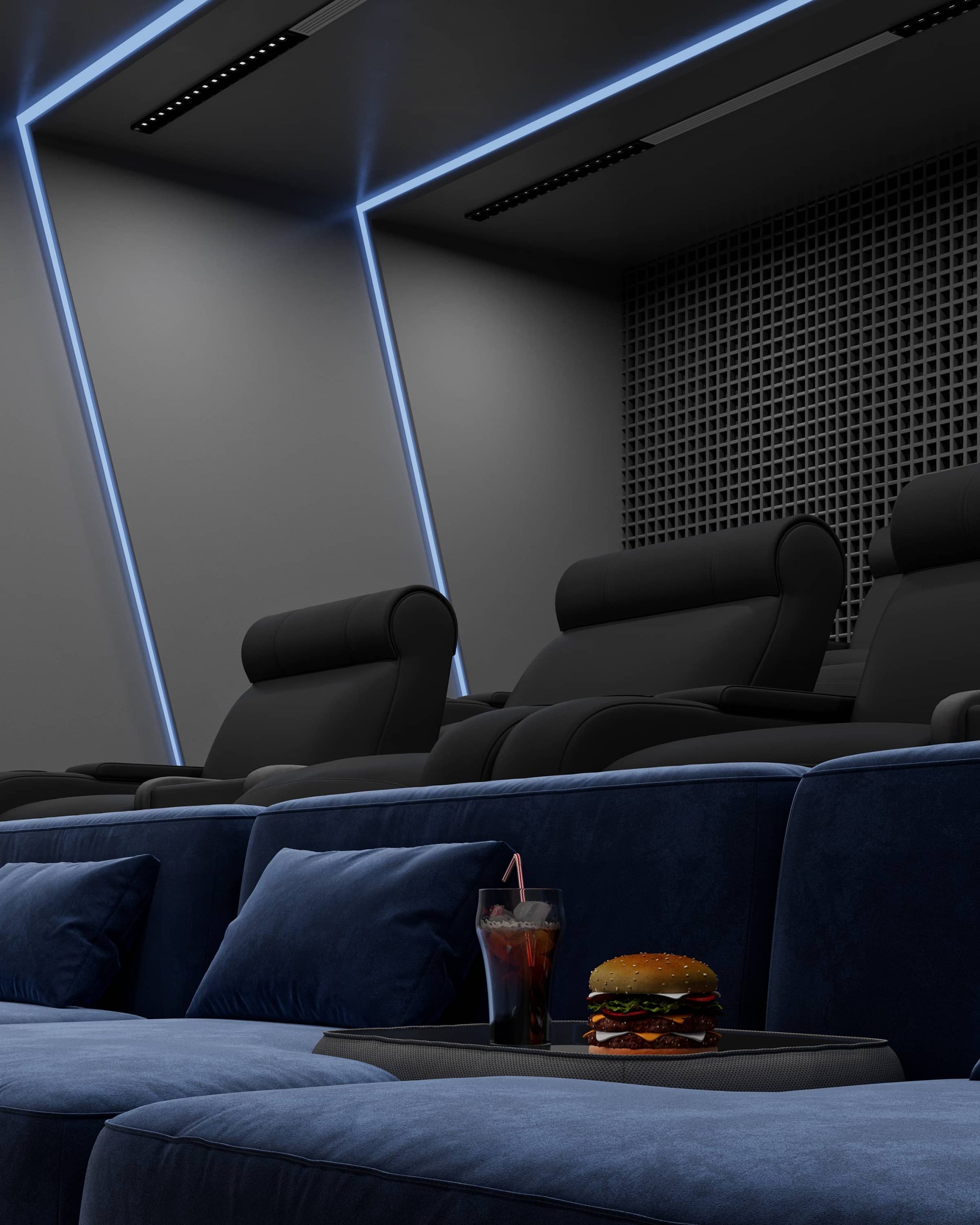 گروه معماری زئوس | نمونهکار | طراحی دکوراسیون تجاری | طراحی سالن سینما VIP مدرن